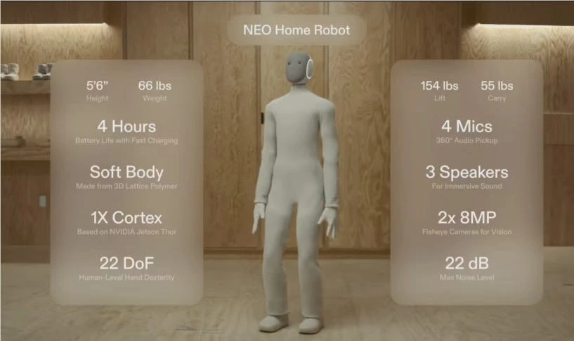 A startup norte-americana 1X Robotics lançou o NEO, um robô humanoide desenhado para executar tarefas domésticas e vender a ideia de um assistente pessoal físico para residências. Segundo a própria empresa, o NEO foi concebido para automatizar tarefas repetitivas — desde arrumar a casa até guardar objetos — com operação autônoma por padrão e modos assistidos para “ensinar” o robô quando necessário.