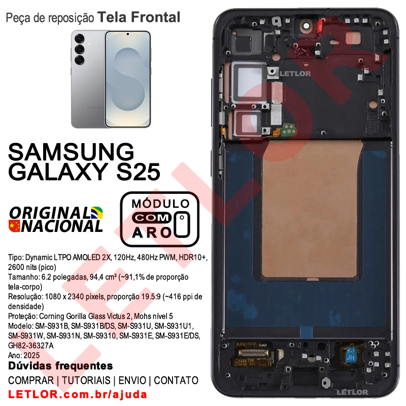 Tela Samsung Galaxy S25 5G 6.2″ S931 Original Nacional Com Aro